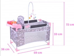 Postýlka je vhodná pro panenky přibližně do 40 cmstabilní kovový rám s prodyšnými síťovanými boky. Jemné barvy s růžovými a šedými prvky lahodí dětskému pokojíčku. V balení najdete vše potřebné k plnohodnotné hře na rodiče.