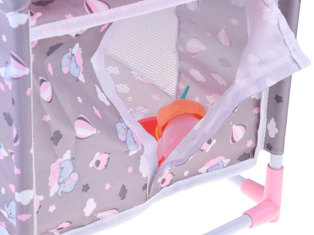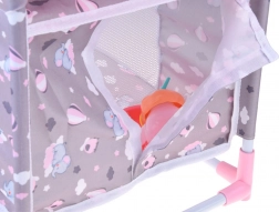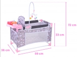 Lehká cestovní postýlka s prodyšnou síťovinou a závěsnou karuselou zabaví panenku a pomůže s usínáním. Vhodná pro panenky do cca 40 cm.