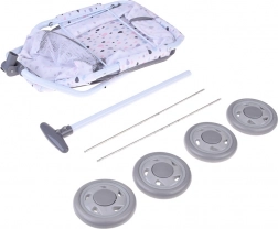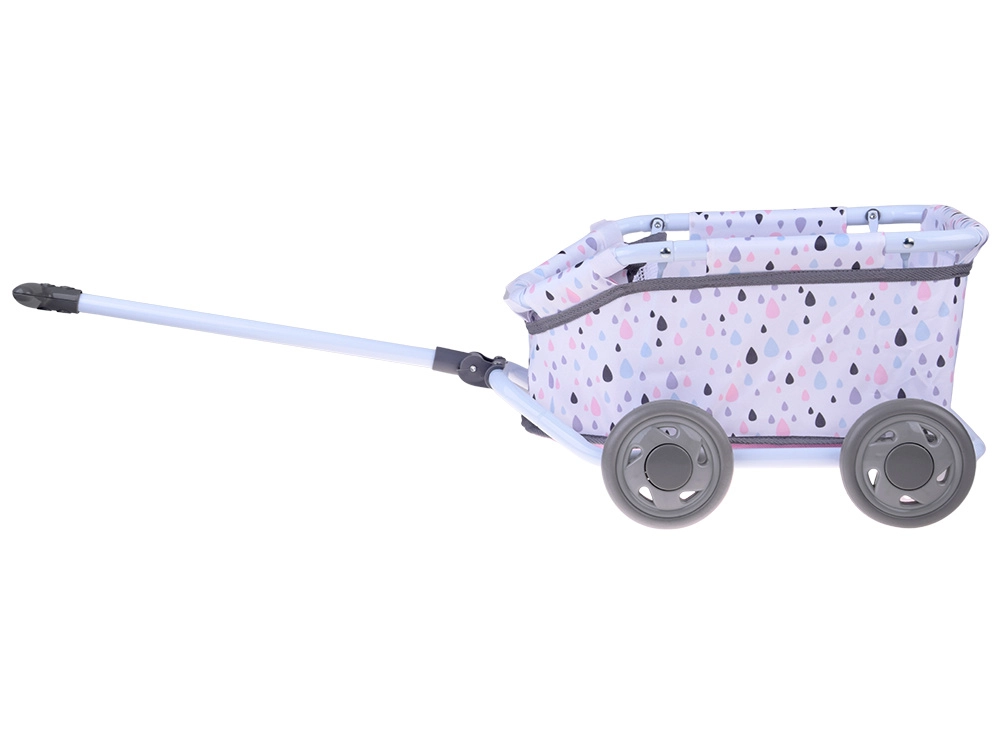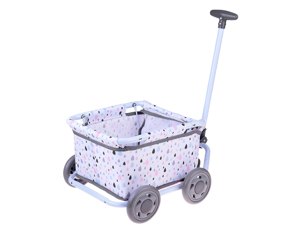 Tento stylový vozík s pastelovým vzorem kapek je ideální pro každodenní hraní, procházky po bytě i na zahradě. Lehká kovová konstrukce a měkký textilní koš poskytují pohodlný prostor pro panenku, plyšáka i drobné doplňky.