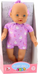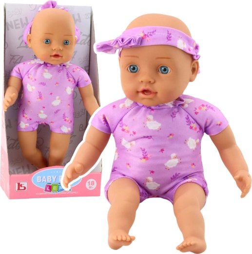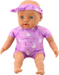 Roztomilá miminkovská panenka o výšce 31 cm potěší každé dítě, které rádo pečuje a hraje si na rodinu. Má realistické rysy obličeje, velké modré oči a měkké tělíčko v příjemném fialovém body s květinovým motivem. Je lehká do ručky, bezpečná a skvěle se hodí na mazlení i cestování.