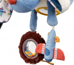 Pejsek Jules přináší miminku spoustu podnětů pro rozvoj smyslů – od odlesků v zrcátku po šustivé a chrasticí efekty. Díky závěsnému provedení ho jednoduše upevníte na kočárek, autosedačku nebo postýlku a dítě zabaví doma i na cestách.
