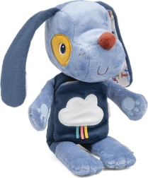 Plyšový pejsek Jules je ideální hračka pro rozvoj jemné motoriky, smyslového vnímání i fantazie. Měkoučké tělo s hebkým povrchem láká k mazlení, zatímco látková knížka na bříšku představuje malý příběh, který dítě zabaví doma i na cestách. Svítící prvky na obláčku a tlapkách jemně září ve tmě a pomáhají navodit pocit bezpečí při usínání.