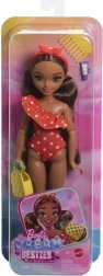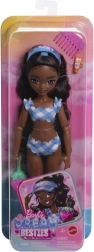 Stylová panenka BARBIE Dream Besties přináší do hry spoustu letní atmosféry. Má dlouhé, husté vlasy vhodné pro česání a tvorbu účesů, polohovatelné paže a nohy pro snadné pózování a barevné plavky s volánky, které podtrhují její jedinečný styl. Doplňky s plážovým motivem inspirují k nekonečným příběhům u moře i doma.