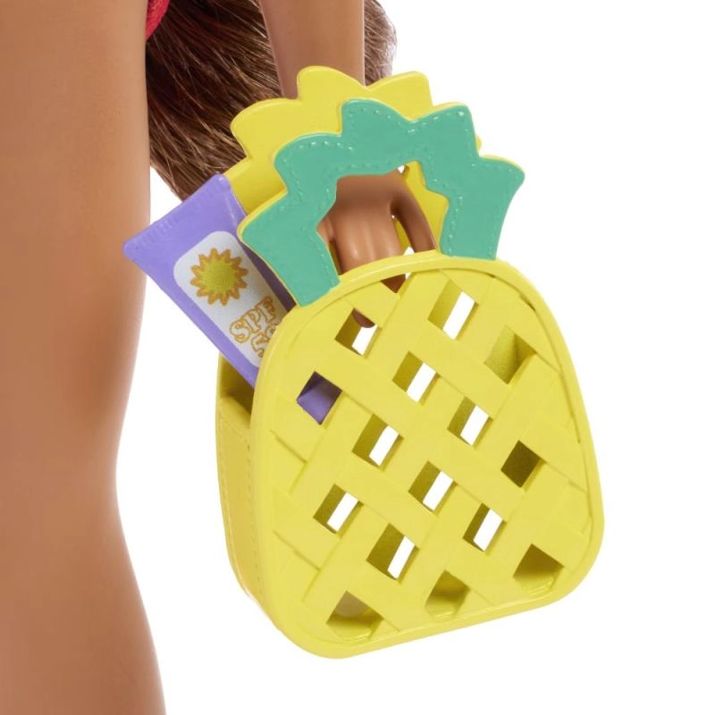 Tematická kabelka a miniaturní „opalovací krém“ se snadno drží a rozšiřují možnosti hry a vyprávění.