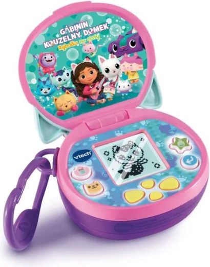 Interaktivní hračka Vtech inspirovaná světem Gábinina kouzelného domku nabízí pestrou porci zábavy a učení v jednom. Děti mohou řešit speciální úkoly, praskat bubliny, hrát si na schovávanou, tancovat s DJ Kocourem a zamlžené zrcadlo proměnit v piškvorkové hřiště. Vše je navrženo tak, aby podporovalo zvídavost, soustředění i zdravé sebevědomí.