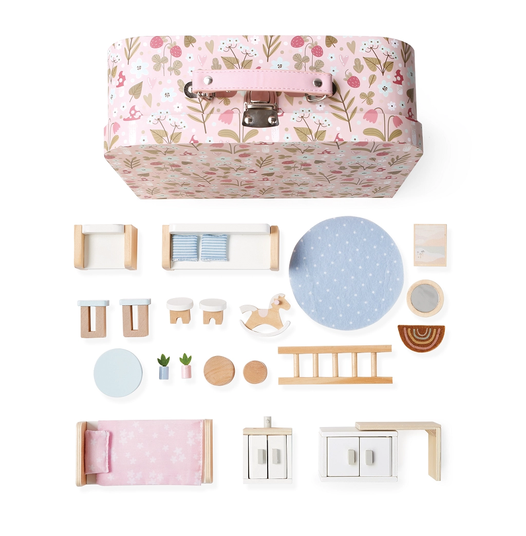 Tento kufříkový domeček je skvělým dárkem pro malé milovníky panenek. Nabízí kvalitní zpracování, snadnou přenosnost a dlouhé hodiny kreativní hry, ať už doma nebo na cestách.