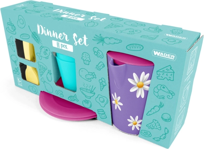 Malá jídelní souprava Party Time je ideální pro malé kuchařky a kuchaře, kteří milují vaření a pořádání dětských párty. Set obsahuje konvičku s IML grafikou s roztomilými sedmikráskami, 2 šálky, 2 talířky, 2 vidličky, 2 nože a 2 lžičky – celkem 11 dílů. Díky elegantnímu balení je set skvělý i jako dárek.