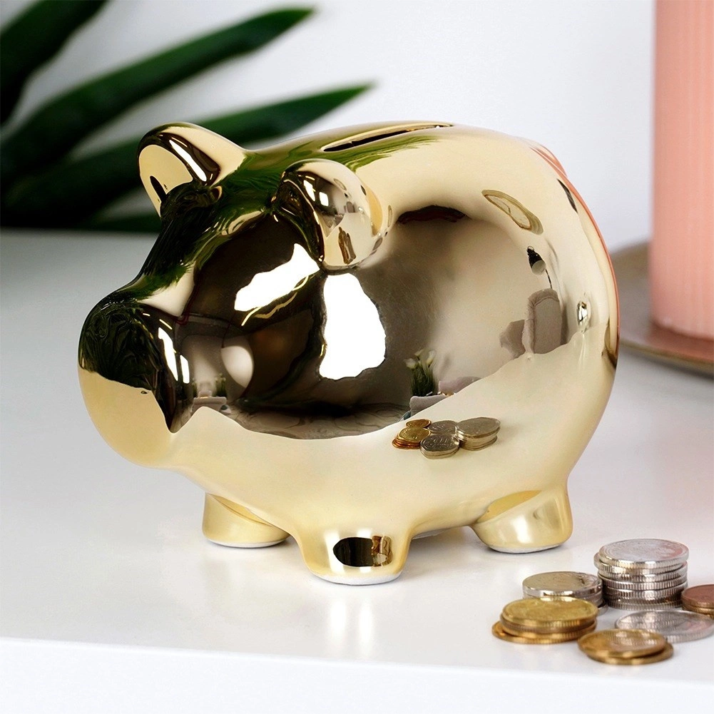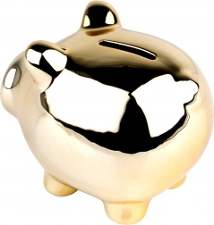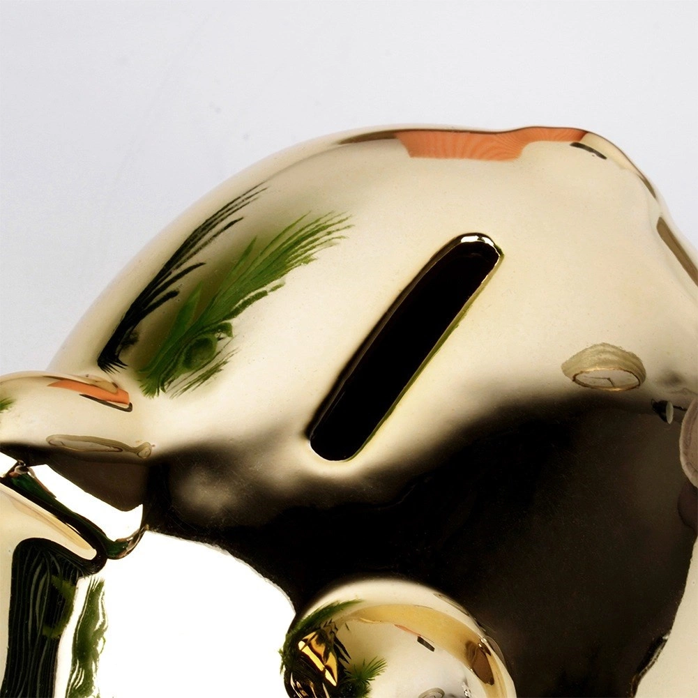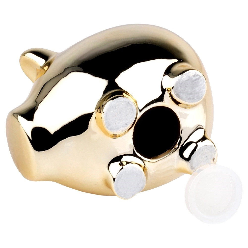 Elegantní keramická pokladnička v podobě klasického prasátka kombinuje funkčnost a design. Zrcadlová zlatá povrchová úprava rozzáří polici, stůl i dětský pokoj a motivuje ke každodennímu ukládání drobných úspor.