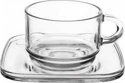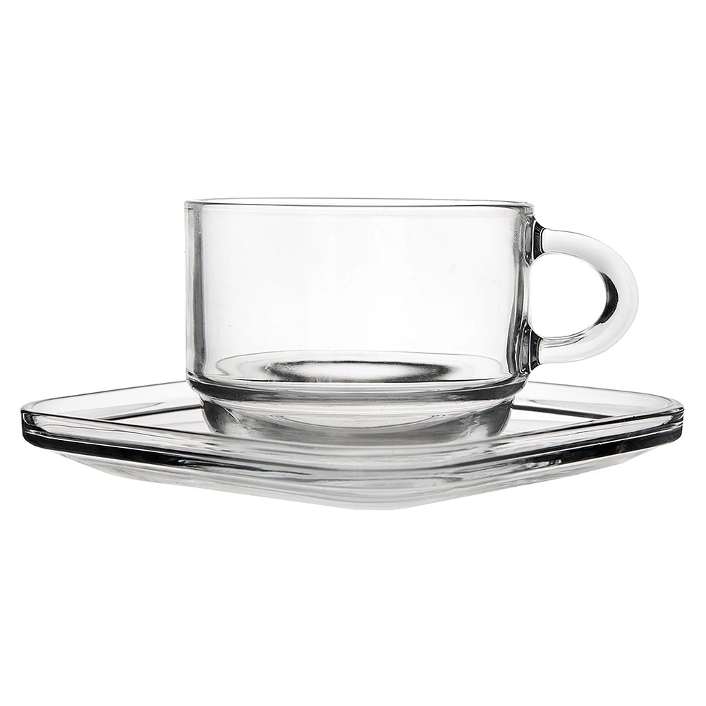 - Moderní vzhled: čiré sklo a hranatý podšálek pro efektní servírování.