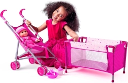 Tato krásná sada obsahuje vše, co vaše dítě potřebuje k péči o svou oblíbenou panenku. Součástí je sportovní kočárek s kovovou konstrukcí, který je nadmíru praktický díky snadné manipulaci. Dále je přiložená cestovní postýlka, ideální pro domácí i venkovní hraní.