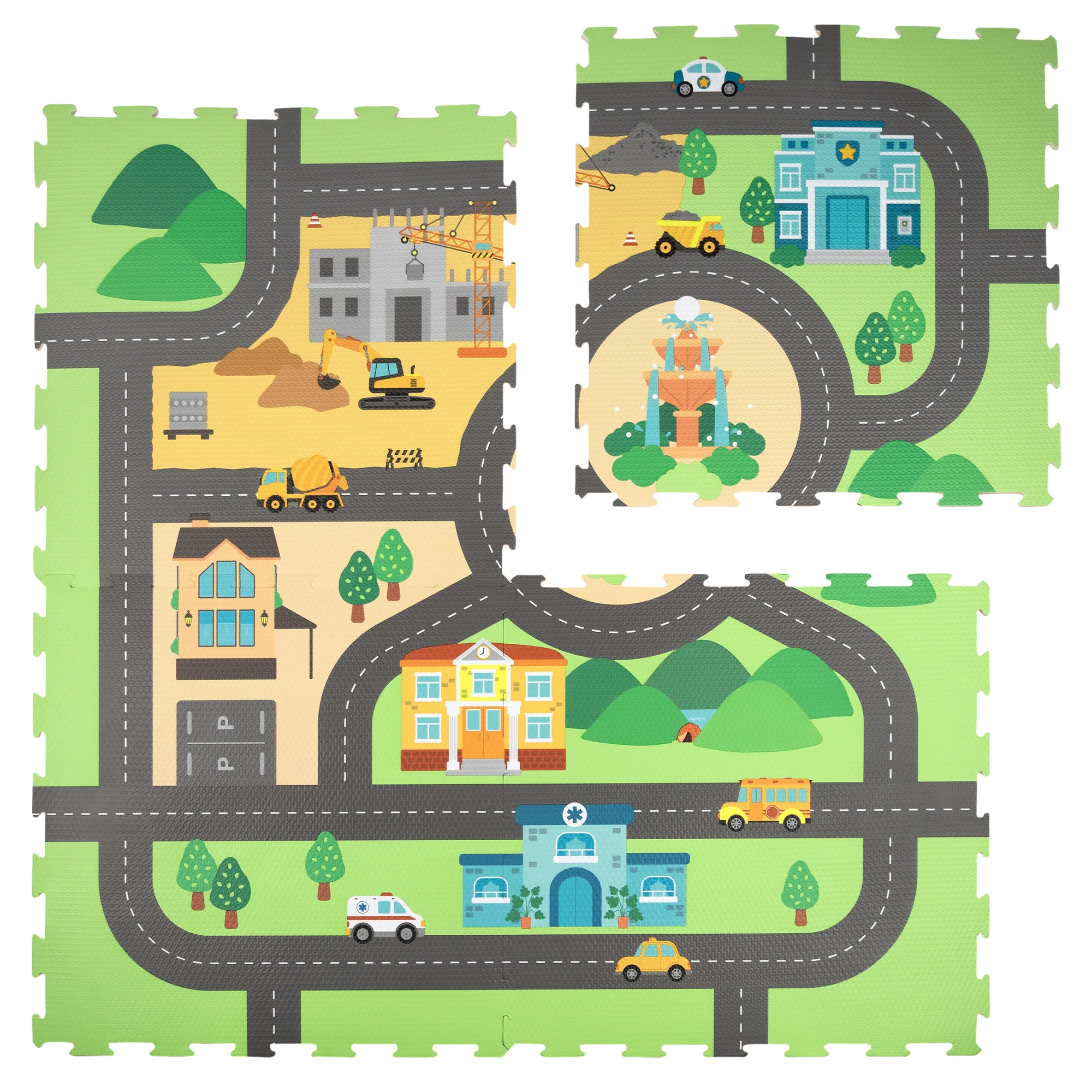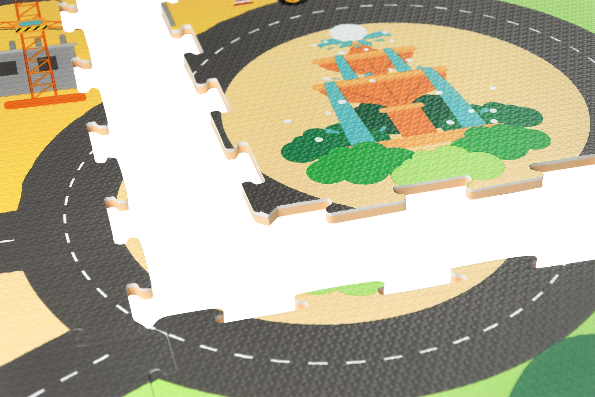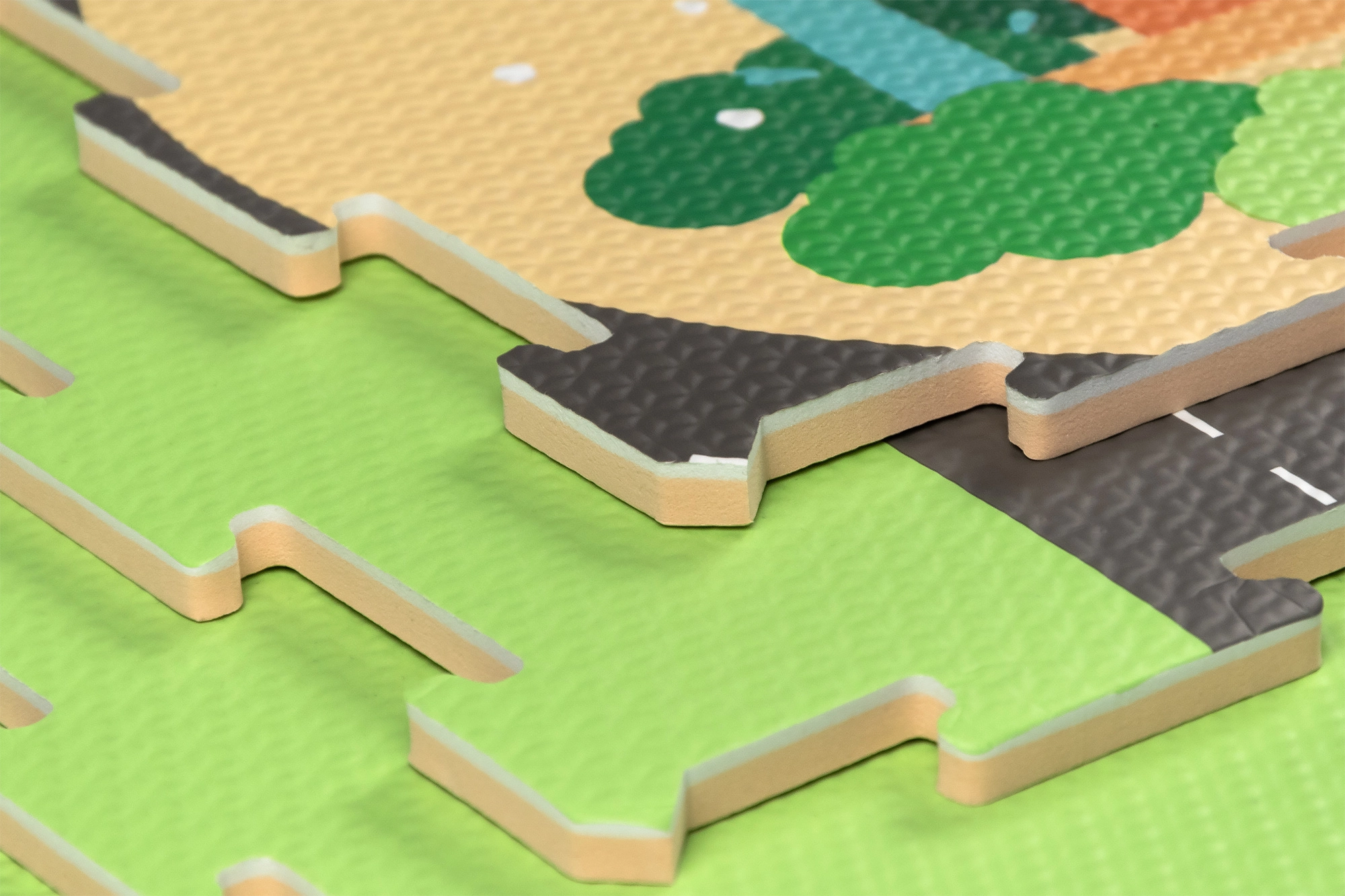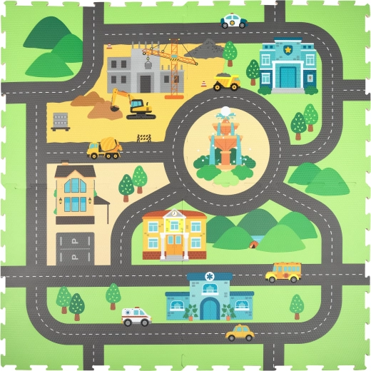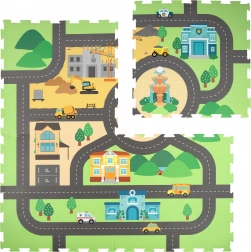Vzdělávací pěnové puzzle HUMBI spojují učení a hru v jednom. Díky potištěným cestám a budovám děti snadno vytvoří vlastní město, plánují trasy a rozvíjejí představivost. Povrch je měkký, tlumí nárazy a chrání před chladem z podlahy.