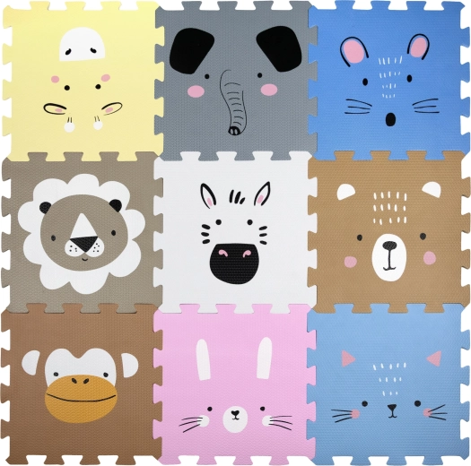 Tato vzdělávací pěnová podložka HUMBI spojuje hraní a učení v jednom. Devět barevných dílků s motivy zvířátek se jednoduše zacvakává jako puzzle a vytváří měkké a bezpečné prostředí pro každodenní zábavu. Díky antiskluzovému povrchu a příjemné tlumicí vrstvě je ideální do dětského pokoje i herního koutku.