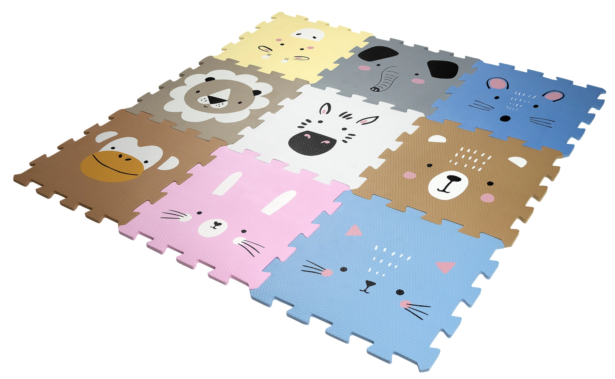 Vytvořte dětem bezpečné a hravé místo s pěnovou podložkou HUMBI. Devět velkých puzzle dílů s roztomilými zvířátky skládá měkkou, antiskluzovou a tepelně izolační plochu o rozměru 120 × 120 cm. Kvalitní EVA pěna bez ftalátů, formamidu, BPA a PVC tlumí nárazy a chrání před chladem podlahy.