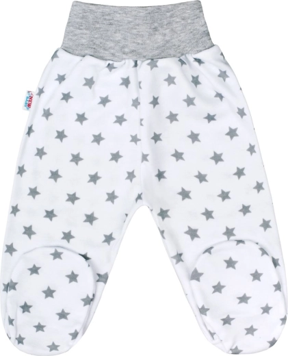 Pohodlné dojenecké polodupačky NEW BABY Classic II v šedé barvě s motivem hvězdiček nabízejí měkký a kvalitní bavlněný materiál a široký neškrtící pas, který je šetrný k bříšku miminka. Ideální pro každodenní nošení i klidný spánek.