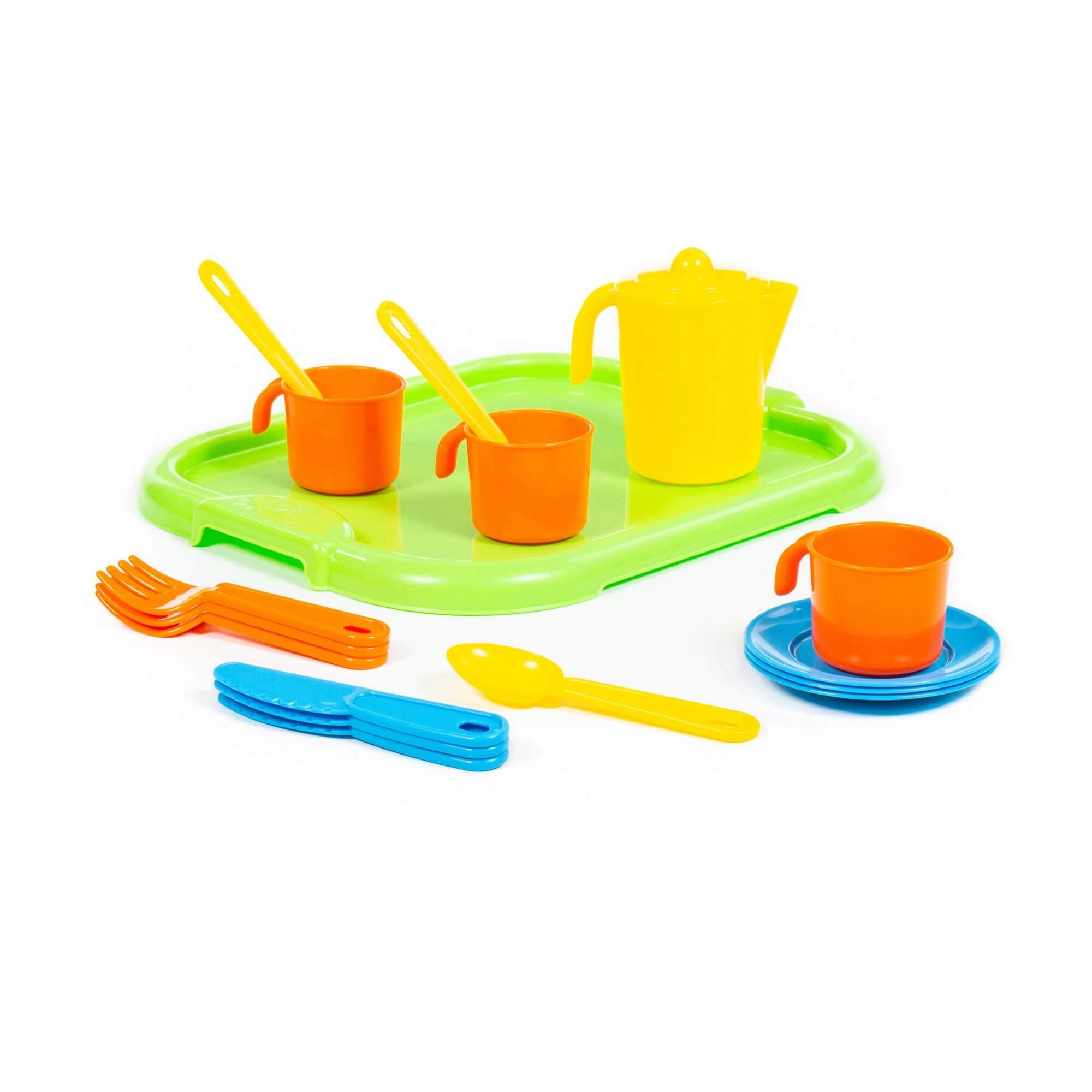 Barevná dětská čajová sada pro tři s praktickým tácem je ideální pro hraní na čajový dýchánek. Lehký a odolný plast, bezpečné provedení a zářivé barvy podněcují fantazii. Skvělé pro děti od 3 let.