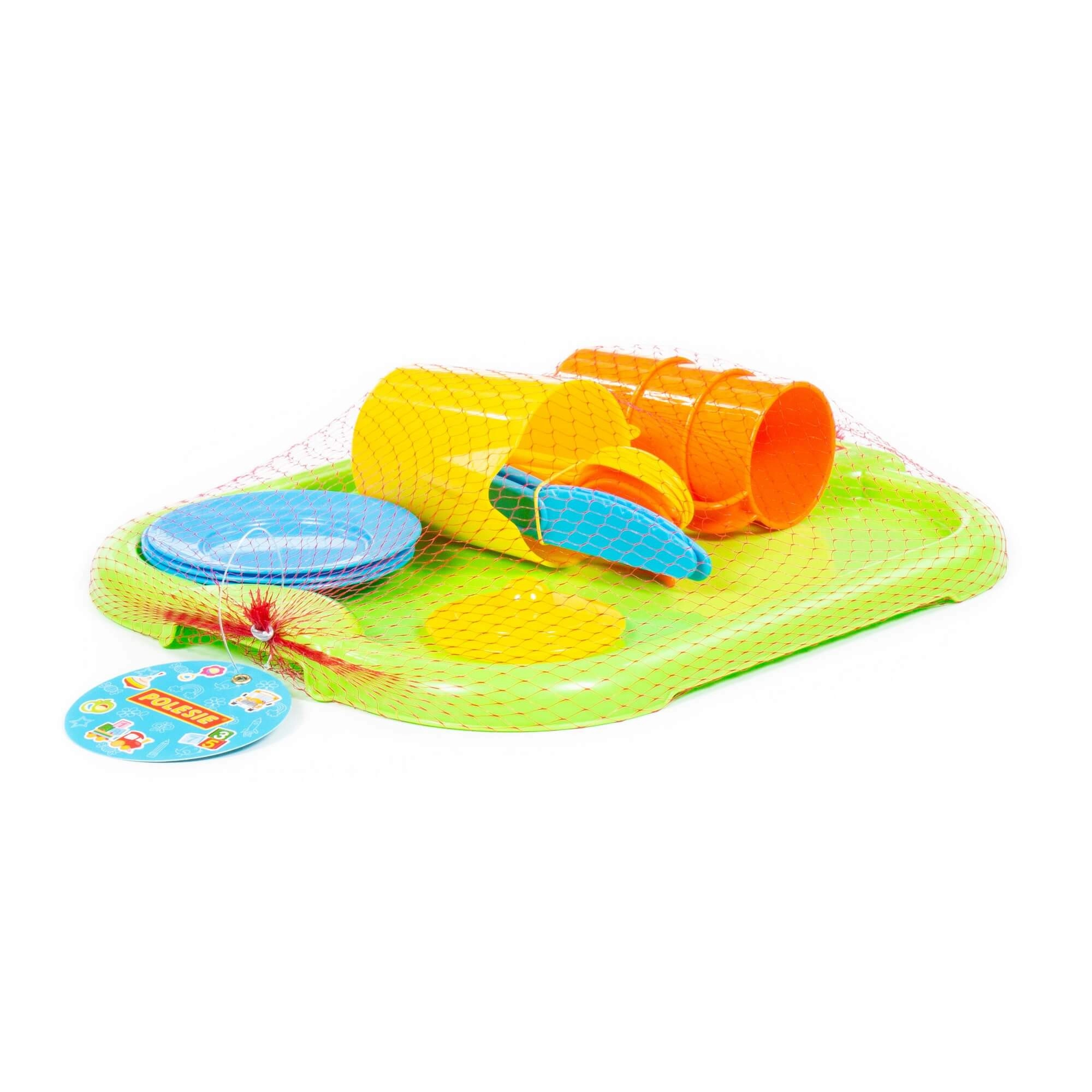 Zelený servírovací tác pomáhá dětem přenášet a uklidit všechny díly najednou.