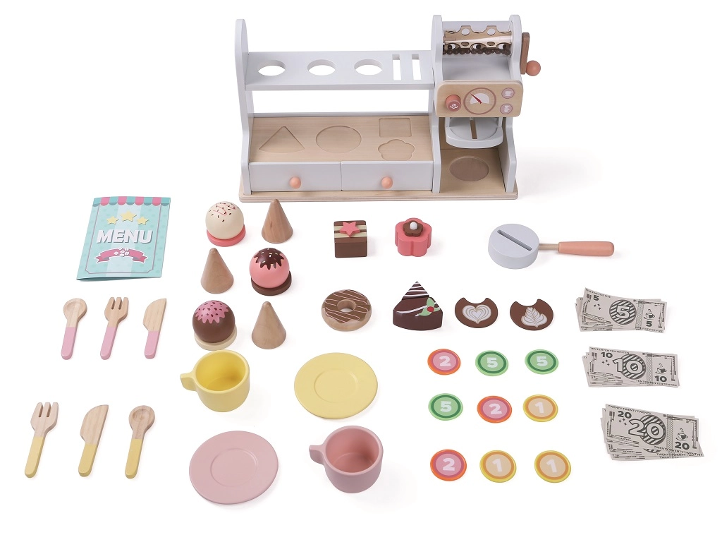 - Dřevěná sada na hraní rolí – cukrárna a kavárna 2 v 1