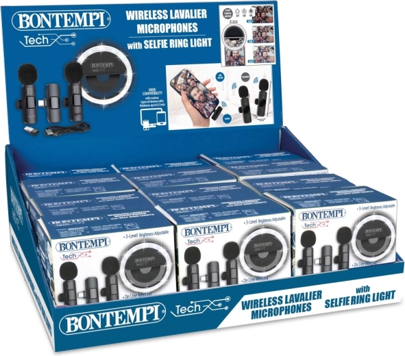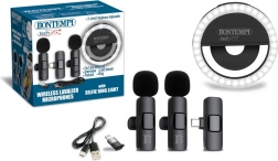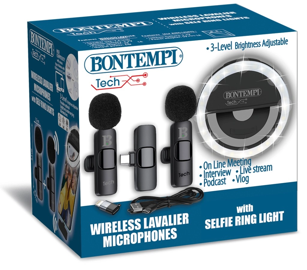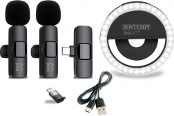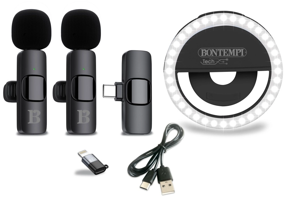 Tato praktická sada sjednocuje kvalitní osvětlení a bezdrátový záznam zvuku v jednom. Mini kruhové LED světlo se snadno připevní a díky 3 stupňům jasu zajistí přirozené nasvícení při natáčení přední kamerou. Dva klopové mikrofony se připnou na oděv a spolehlivě přenesou hlas bez okolního ruchu, což ocení vloggeři, tvůrci Reels/Shorts i podcasteři.