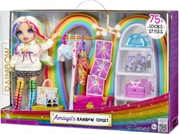 Styl, barvy a nekonečná inspirace – tento šatník s panenkou RAINBOW HIGH je ideální volbou pro děti, které milují módu a kreativní hru. Součástí jsou pečlivě navržené oděvy, kabelky, boty a ramínka, takže snadno vytvoříš desítky různých kombinací a předvedeš je na šatním stojanu či uložíš do regálů.