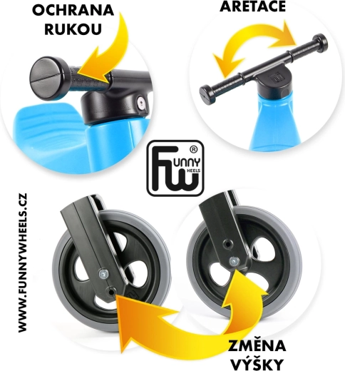 Odrážedlo je vyrobené z odolného, zdravotně nezávadného plastu se zahlazenými spoji, má tiché pneumatiky s dobrou přilnavostí, omezený rozsah otáčení vidlice proti protočení řídítek a rozšířené gripy pro ochranu dětských rukou. Skvěle se hodí na doma i ven a snadno se čistí.