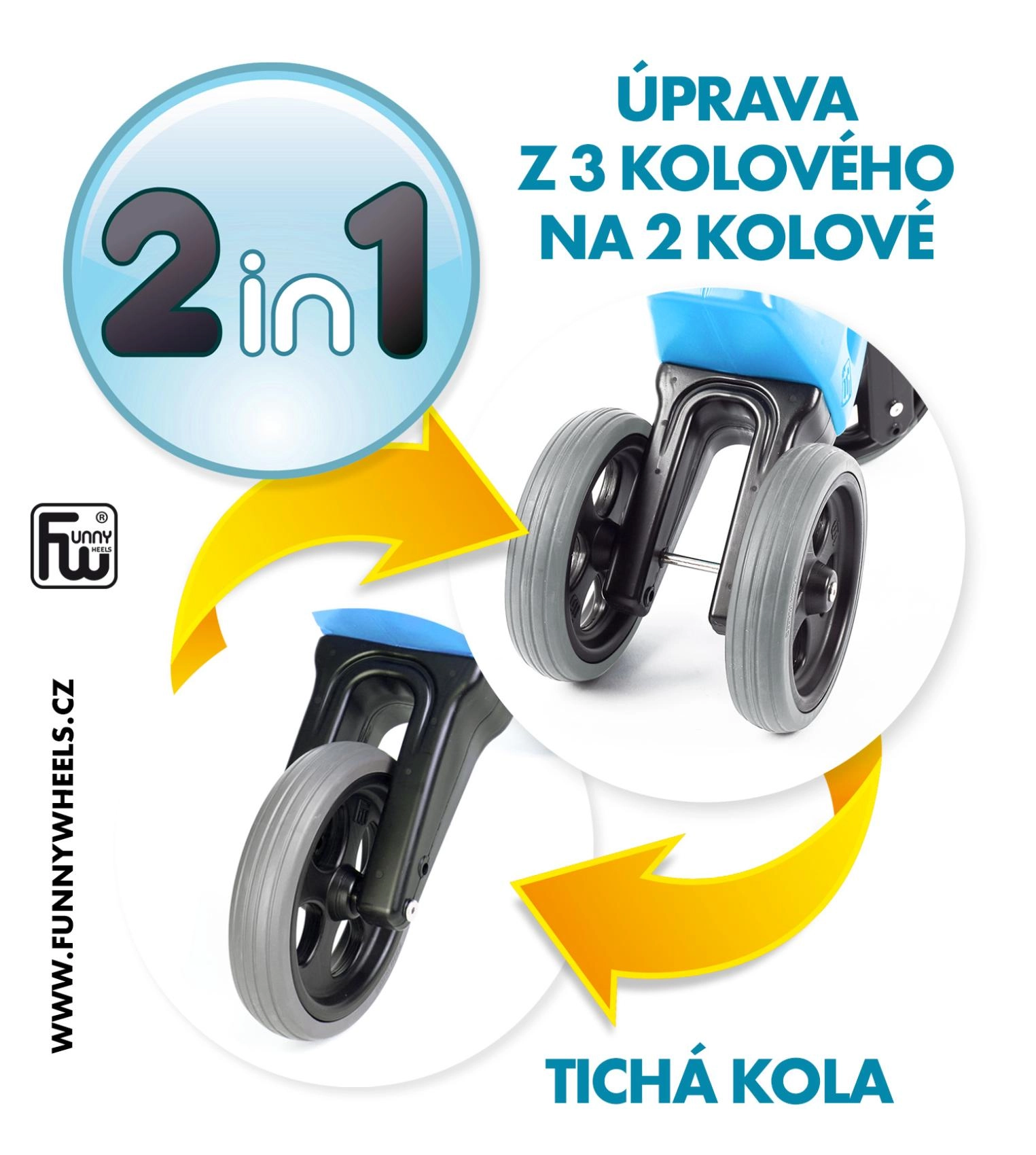 • 2v1 systém – blesková změna z tříkolky na dvoukolku