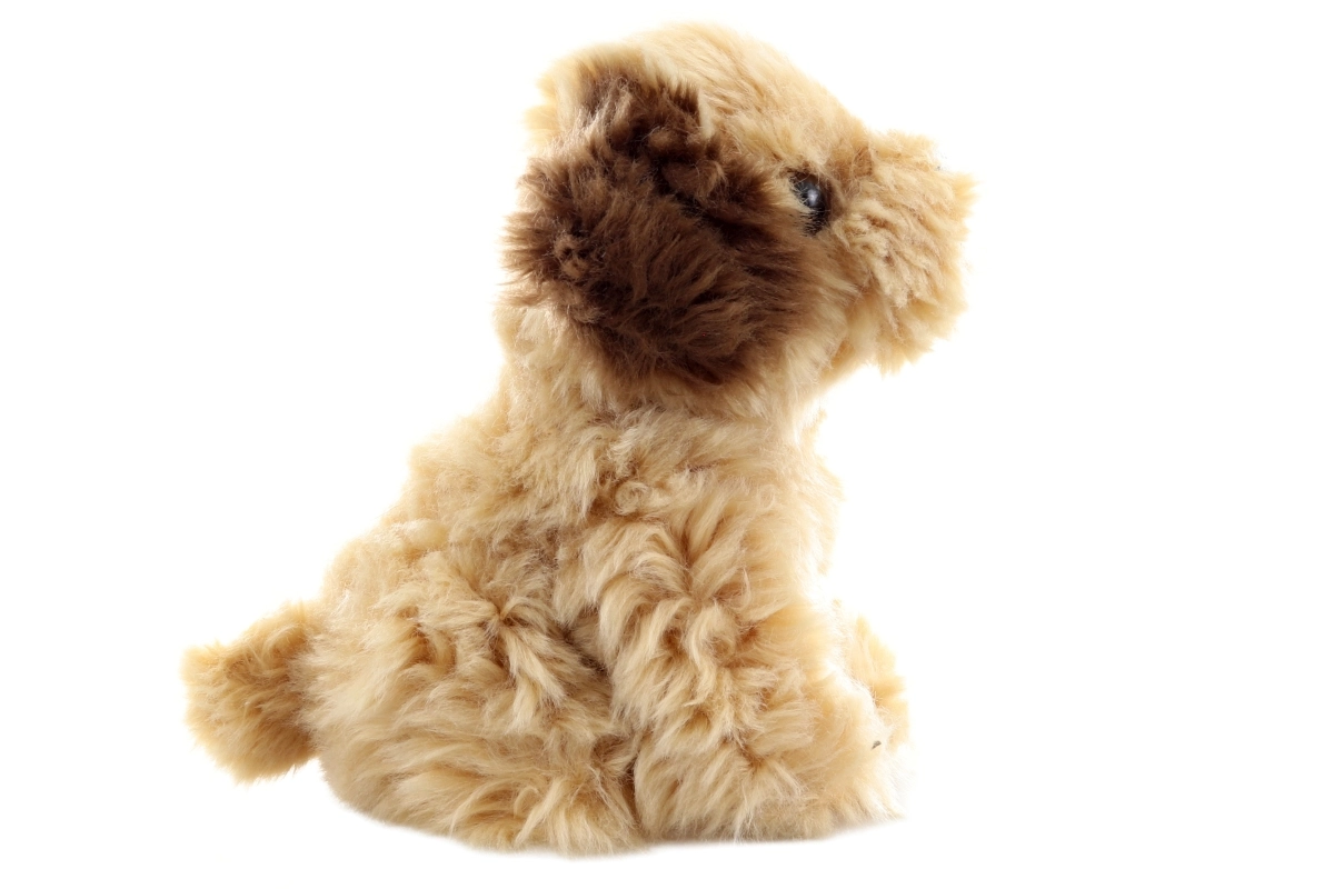 Darker ouška, černý čumáček a sedící postoj dodávají hračce věrný vzhled skutečného štěňátka.