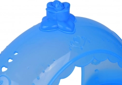 Majestátní bílý kůň s dlouhou hřívou je vybaven sedlem a uzdou v modrém tónu ladícím s kočárem. Ideální pro královské projížďky a fantazijní scénky.