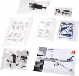 Stavebnice dopravního letadla JETLINER 320 je skvělá volba pro děti i dospělé, kteří milují stavění a letectví. Z 133 pečlivě zpracovaných dílků sestavíte dvoumotorový model v elegantní bílé barvě s modro‑zelenými detaily. Díky samolepkám získá model ještě realističtější vzhled a krásně vynikne na poličce i při hře.