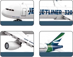 Elegatní bílá barevnost s modrými a zelenými prvky a přiložené samolepky dodají JETLINER 320 autentický vzhled pro vystavení i hru.