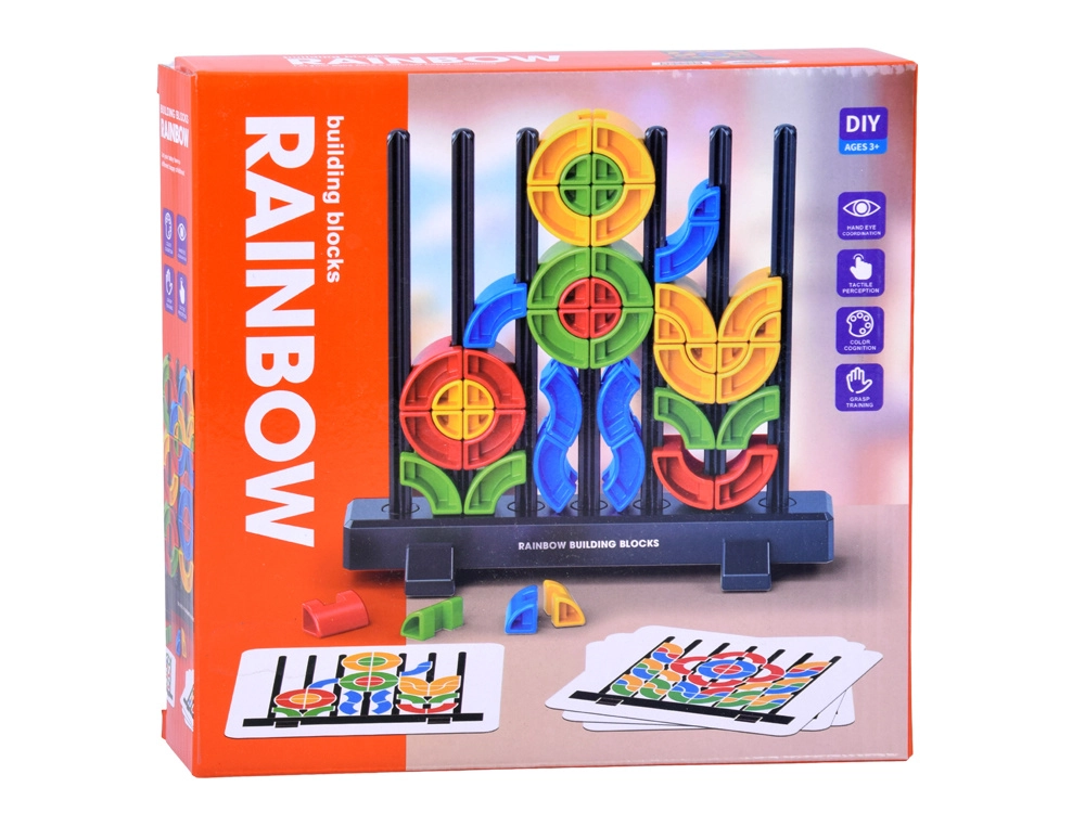 Tato kreativní vzdělávací vkládačka rozvíjí dětskou představivost i dovednosti: navlékáním a vrstvením barevných prvků na tyčky děti trénují přesnost prstů, koncentraci a vizuální vnímání. Díky kartám s předlohami mohou začátečníci snadno začít a postupně si přidávat na obtížnosti.
