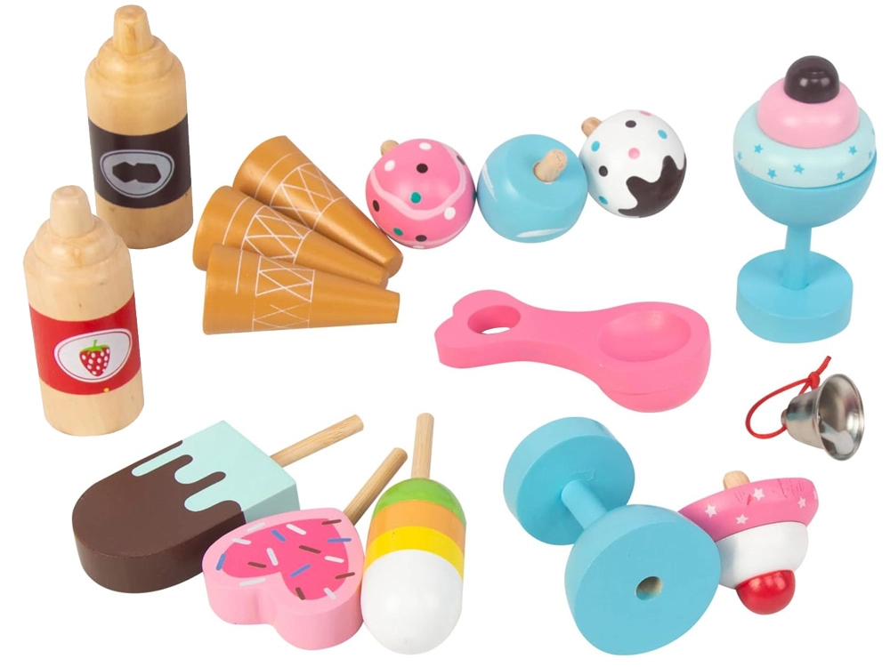 Sirupy, poháry, kornouty, nanuky i naběračka – vše pro autentickou cukrárnu, doplněné zvonečkem a háčky.