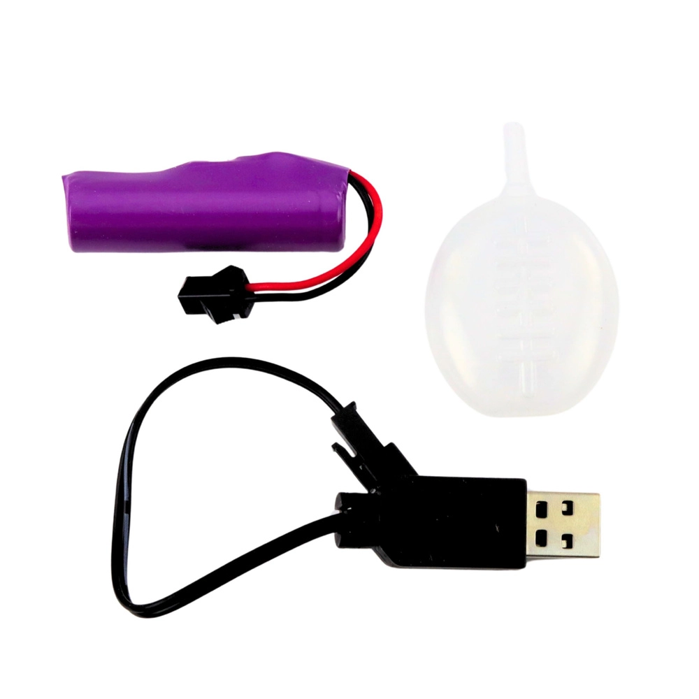 - Nabíjecí akumulátor 3.7 V 500 mAh a USB nabíjení v balení.