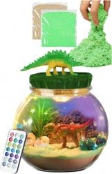 Magické terárium s motivem dinosaurů umožní dětem navrhnout vlastní scénu s pískem, rostlinami, kamínky a figurkami. Díky LED osvětlení s 13 barvami a 3 režimy si mohou přizpůsobit atmosféru podle nálady a vytvořit působivou dekoraci, která v noci jemně svítí.