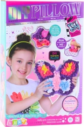 Tato kreativní sada DIY umožní dětem vyrobit si vlastní měkoučký polštářek ve tvaru motýla bez použití jehly či ostrých nástrojů. Barevné kousky textilie se jednoduše vkládají do předem označených otvorů pomocí bezpečného plastového nástroje a vytvářejí plastický 3D vzor.