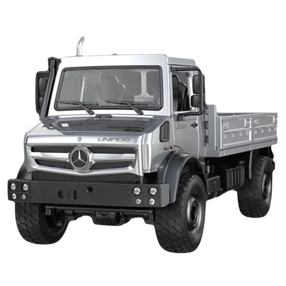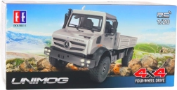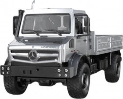 RC terénní auto MERSEDES-BENZ UNIMOG 4x4 je detailně zpracovaný model s kovovými prvky, otevíratelnými dveřmi a kapotou. Proporcionální plyn a řízení umožní plynulé rozjezdy, brzdění i přesné zatáčení. Stabilní vysílač 2,4 GHz poskytuje spolehlivé ovládání bez rušení se zásahem až 25 m.