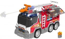 Dominantou je otočný a vysouvací žebřík s vodním dělem, z něhož lze opravdu stříkat vodu. Vzadu najdete otevíratelný úložný prostor pro malé autíčka či příslušenství. Hračka podporuje jemnou motoriku, koordinaci i dětskou fantazii, a to vše v bezpečném provedení z netoxických materiálů.