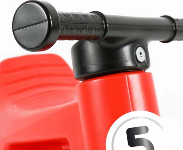 Omezený rozsah otáčení vidlice zabraňuje přetočení řídítek a rozšířené rukojeti chrání dětské ruce.