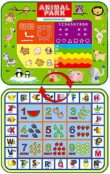 • Oboustranný edukativní design: abeceda, číslice, zvířata, úlohy, hodiny a geometrické tvary.