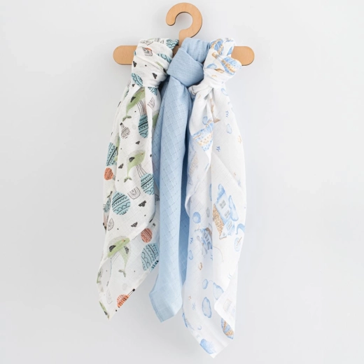 Sada bavlněných plen NEW BABY je nepostradatelnou součástí výbavičky pro novorozence i kojence. Pleny v rozměru 70 × 80 cm jsou vyrobené z kvalitní 100% bavlny s gramáží 120 g/m², která je příjemná na dotek, dobře saje a rychle schne. Balení obsahuje 2 vzorované a 1 jednobarevnou plenu v hravých motivech pro kluky.