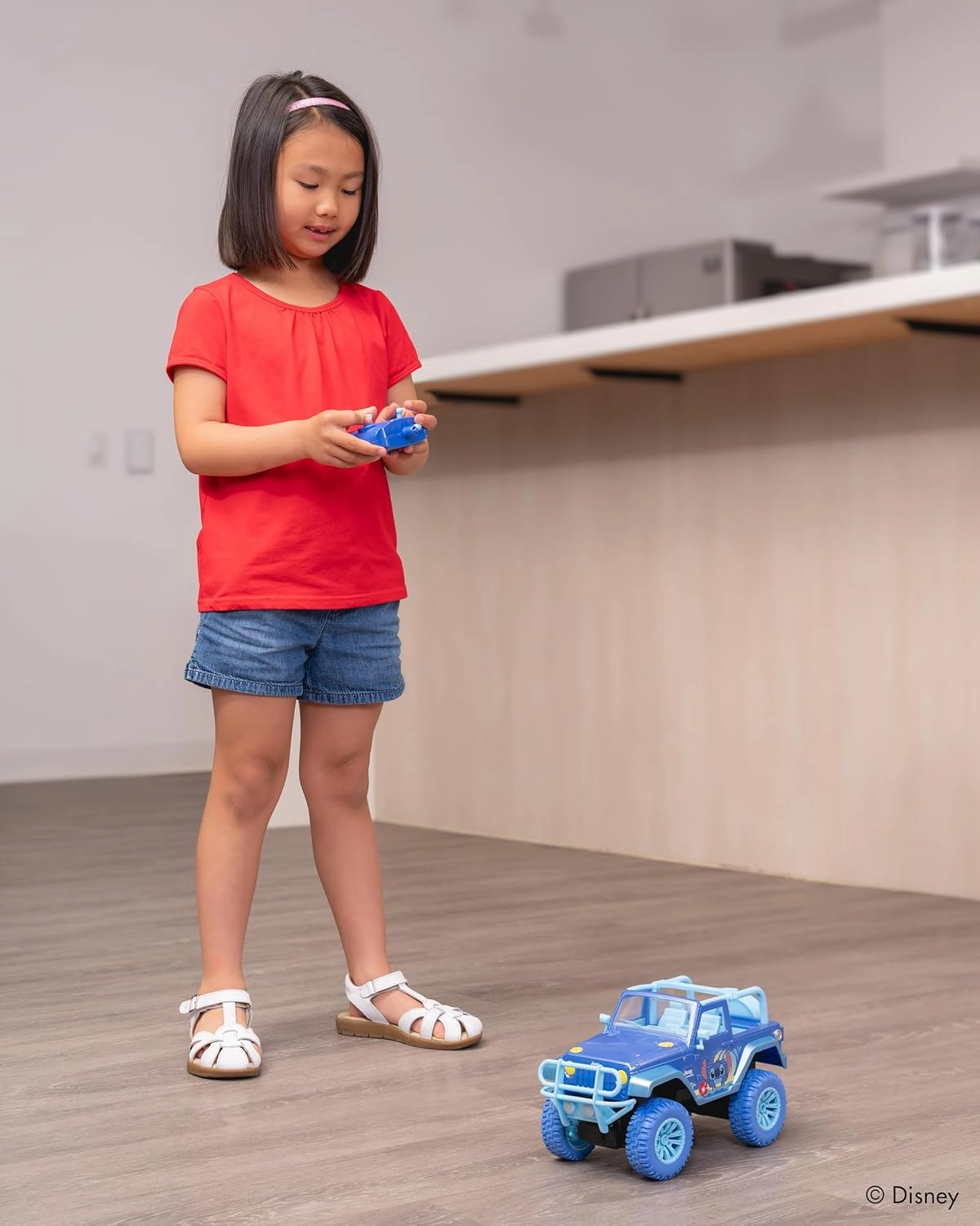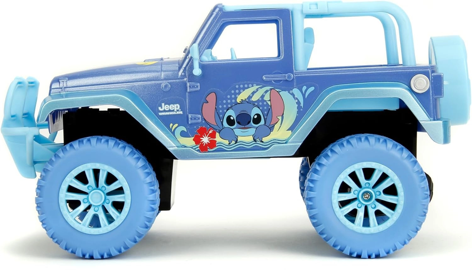 Stylový RC model Jeep Wrangler Stitch spojuje klasický vzhled legendárního Jeepu s veselým světem DISNEY. Karoserie v intenzivní tyrkysově‑modré barvě, potisky s motivy STITCH a masivní podvozek dodávají autu atraktivní off‑road vzhled. Velká kola s hlubokým vzorkem zajišťují jistý záběr na hladkých domácích površích.