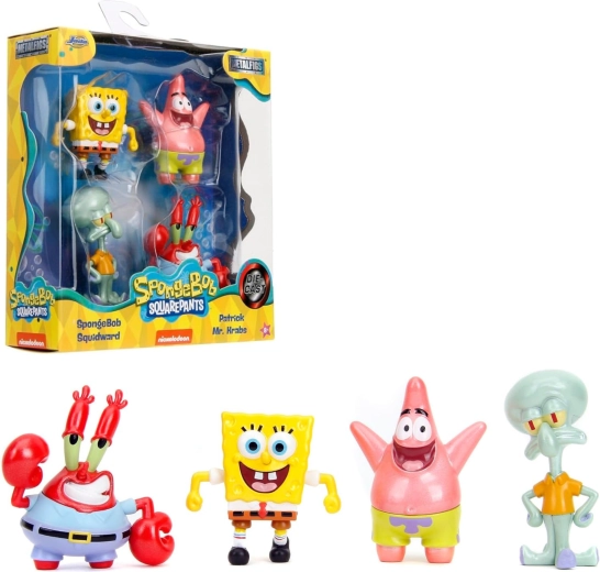 Oficiálně licencovaná sada čtyř figurek z animovaného seriálu SpongeBob SquarePants od značky Jada Toys. Pevné kovové (die‑cast) provedení, výrazné barvy a ikonické postavy – SpongeBob, Patrik, Sépiák a Pan Krabs. Skvělé pro sběratele, dekoraci i lehkou hru.