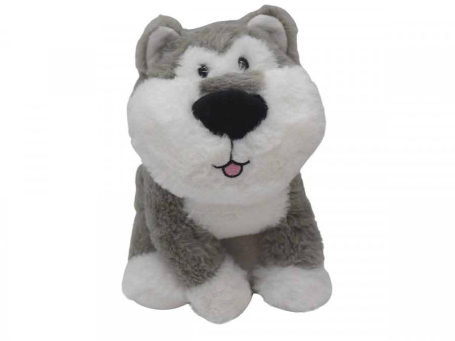Na výběr jsou 3 barevné varianty (šedo‑bílá, hnědo‑bílá, hnědo‑černá). Každý pejsek má měkké plyšové provedení, příjemný dotek a odolné švy, které zaručují dlouhou životnost. Cena je uvedena za 1 kus.