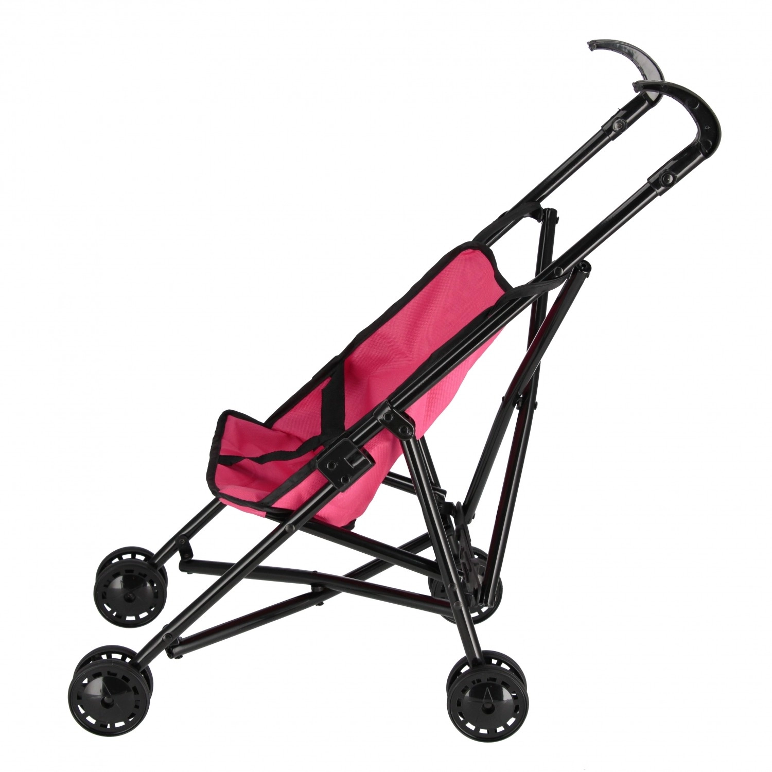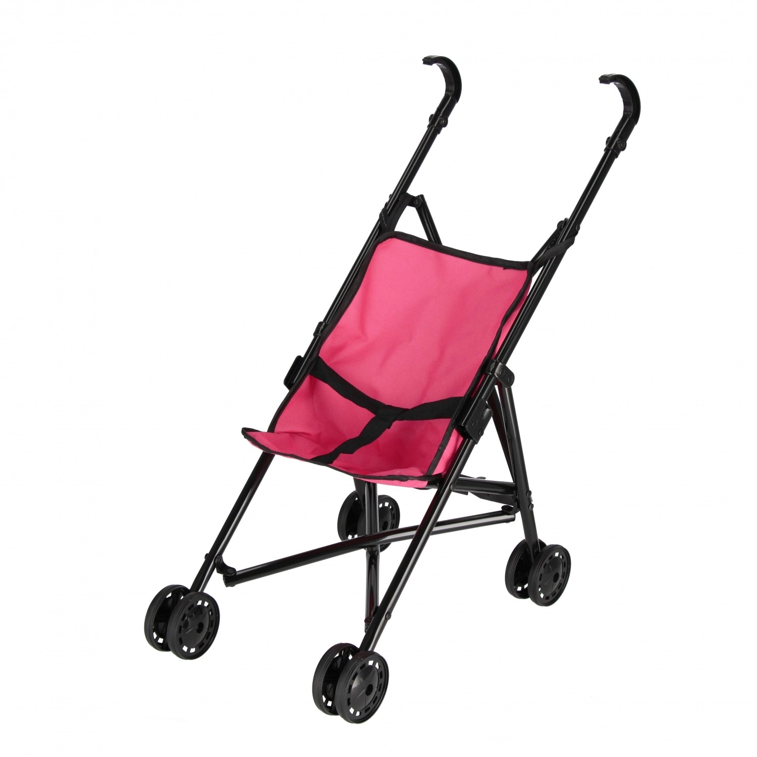 Tento kovový kočárek pro panenky kombinuje pevnou konstrukci s nízkou hmotností, takže se snadno tlačí a zároveň dobře drží směr. Růžové textilní sedátko s páskem udrží panenku bezpečně na místě, ať už se vydáte na procházku po bytě nebo venku.