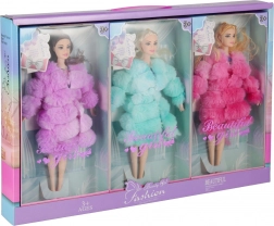 Každá panenka je navržena s důrazem na detail – od módních šatiček a kožíškového kabátku až po ladící botičky. Artikulované končetiny umožňují pózování a přirozený pohyb při hře.