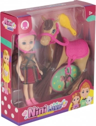 Panenka nosí stylový jezdecký oděv, má dlouhé česatelné vlasy a koníček je vybaven odnímatelným sedlem a uzdečkou. V balení najdete také kartáč na vlasy pro snadnou úpravu vzhledu panenky.