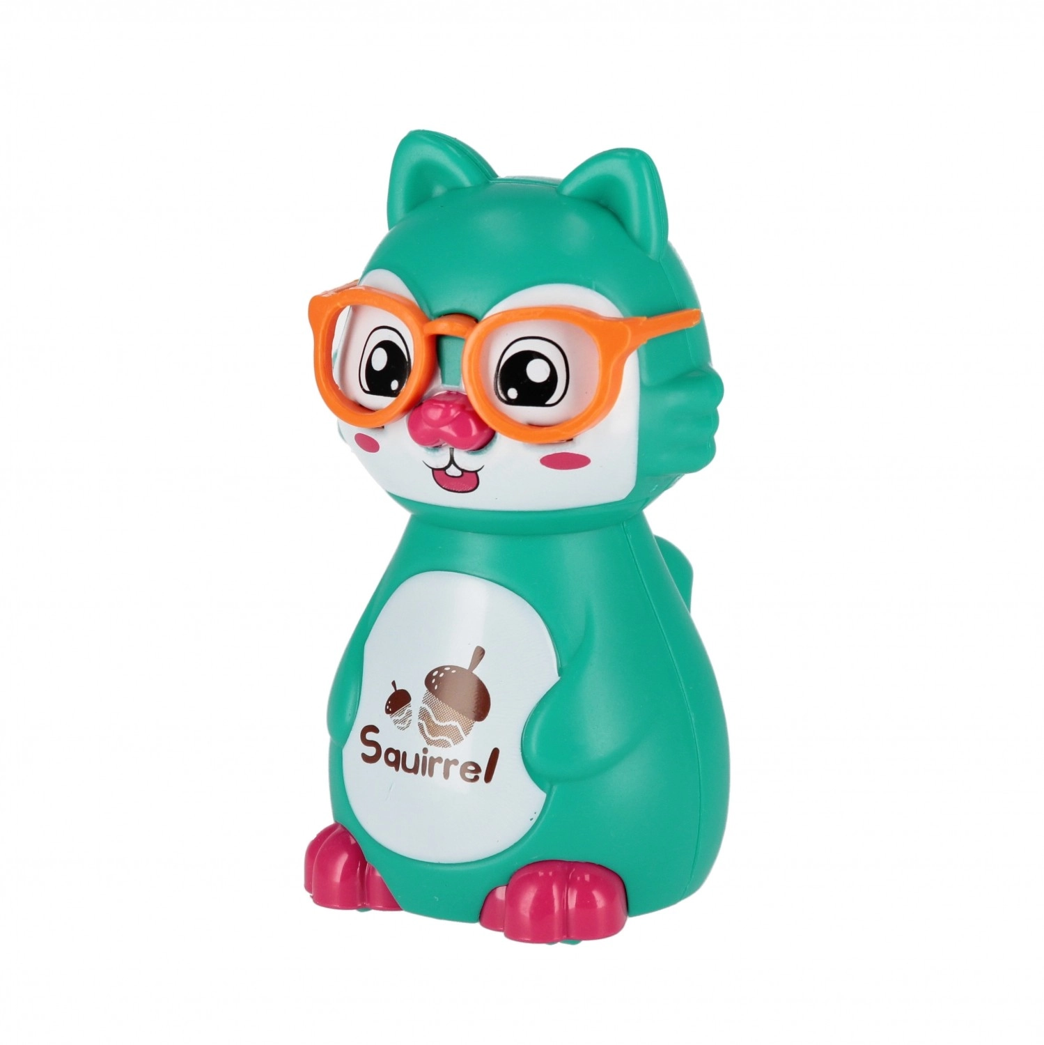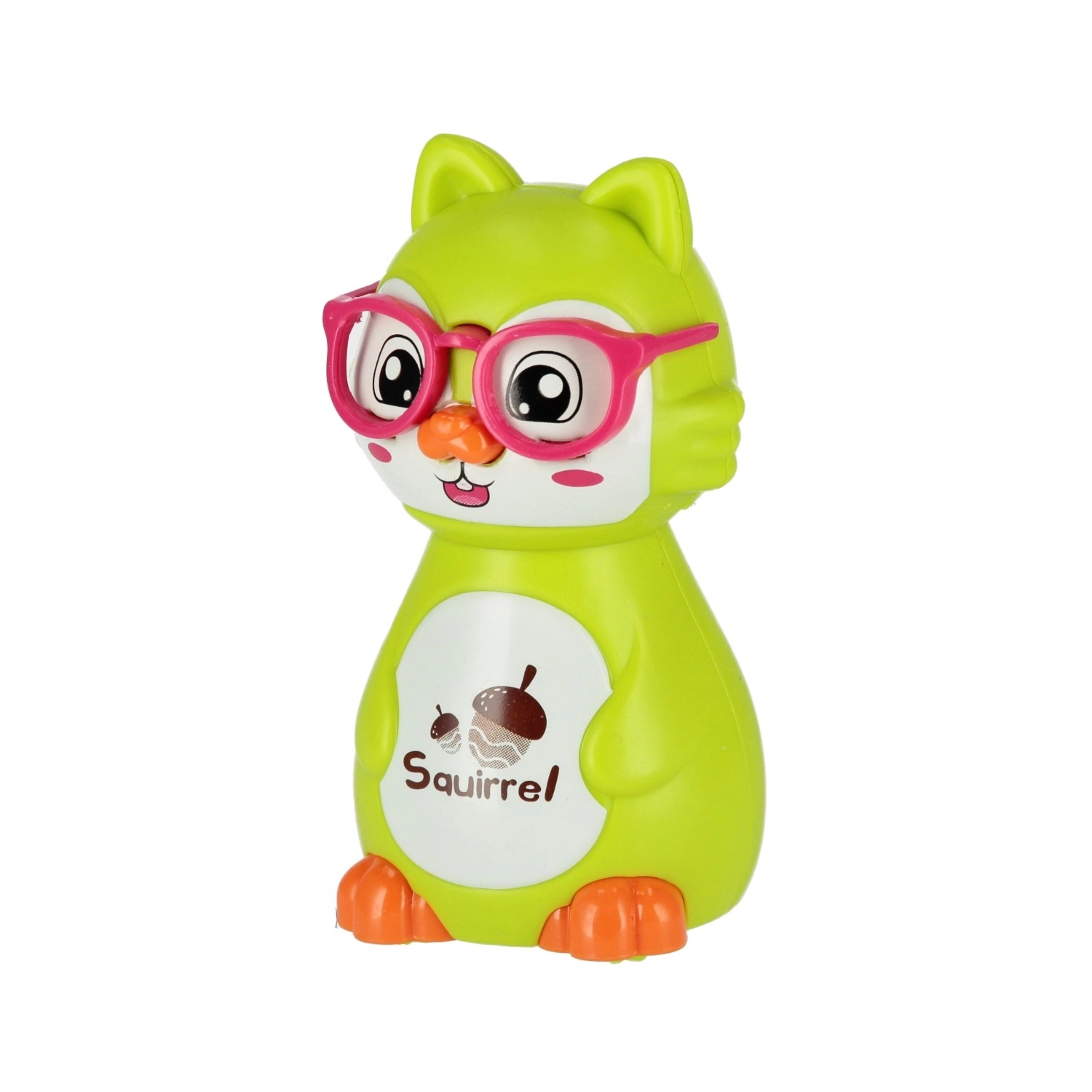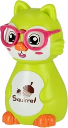 Hračka má zaoblené hrany a odolné plastové provedení, takže je vhodná pro každodenní hraní. Kompaktní velikost 10 cm se hodí na doma i na cesty. K dispozici jsou 4 náhodně zasílané barevné varianty (např. zelená, tyrkysová, oranžová, růžová) s legračními brýlemi a potiskem „Squirrel“ s žaludem.