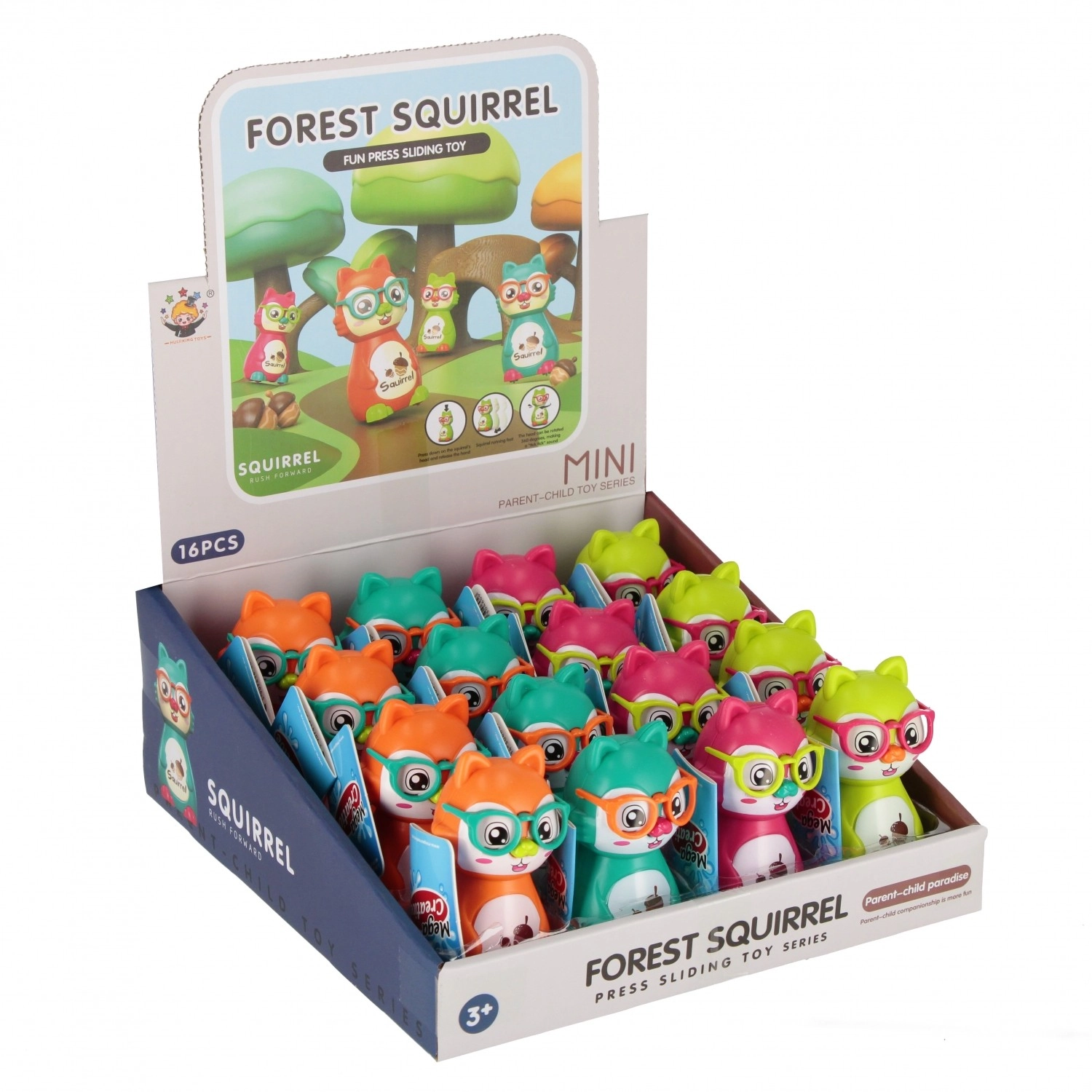 Zábavná jezdící veverka se po stisknutí sama rozjede vpřed a přinese dětem spoustu radosti. Kompaktní velikost 10 cm, veselé barvy a bezpečné oblé tvary z ní dělají ideální hračku pro malé děti. Dostupná ve čtyřech barevných variantách, odesíláno náhodně. Vhodné pro děti od 3 let. Cena za 1 kus.
