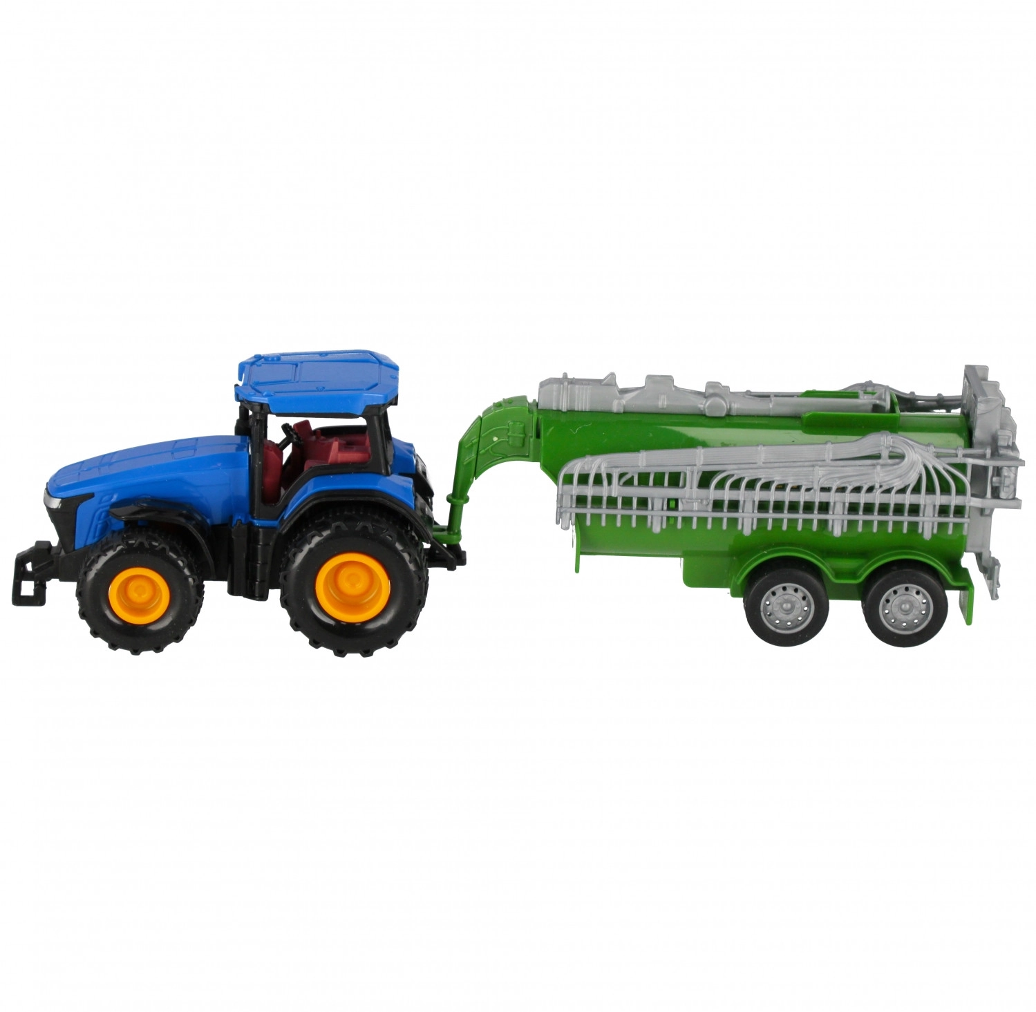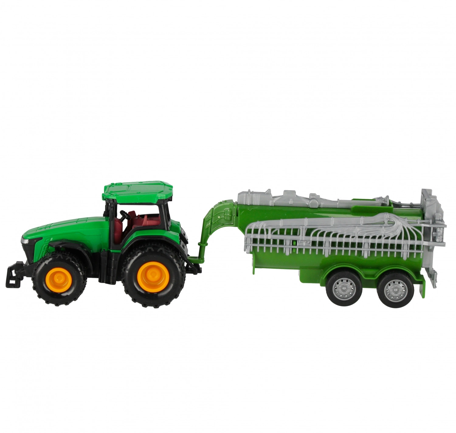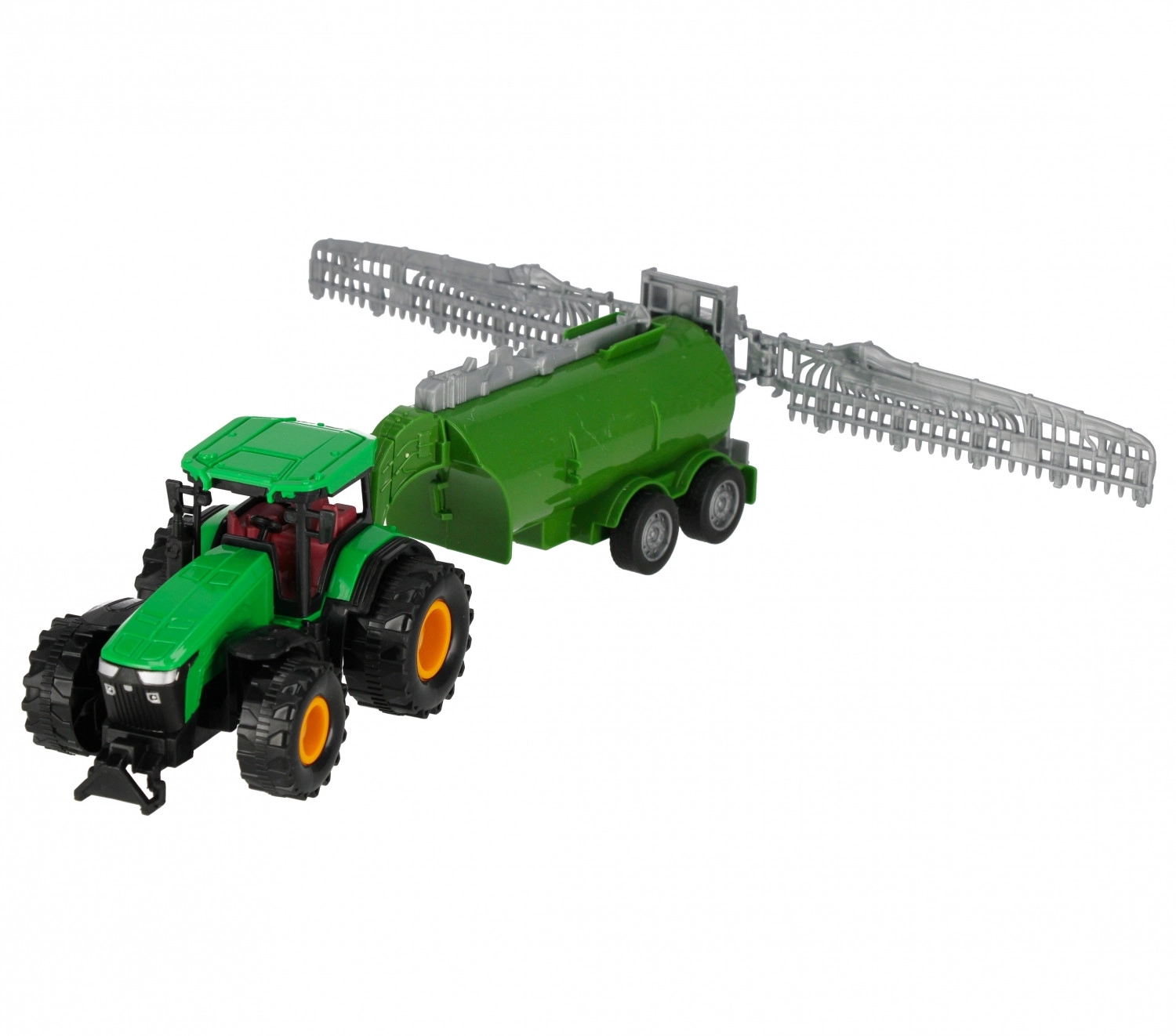 Tento detailně zpracovaný zemědělský stroj s cisternovým přívěsem přináší dětem autentickou farmářskou zábavu. Díky funkci pull-back se stačí rozjet zpět a pustit – traktor vyrazí vpřed a podpoří dynamickou hru. Pohyblivé části, jako jsou výklopné nebo sklopné prvky přívěsu a realistické detaily kabiny, zvou k objevování a rozvíjejí motoriku i fantazii.