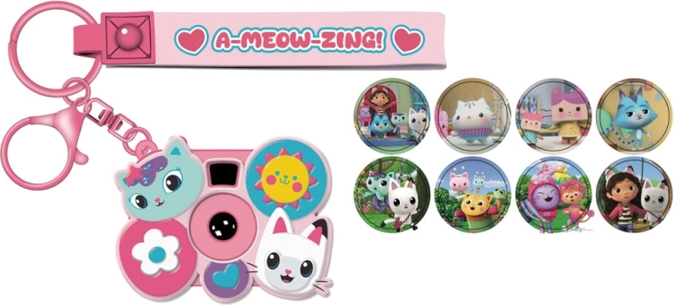 Objevte kouzelnou zábavu na cesty s klíčenkou s projektorem inspirovanou oblíbeným seriálem GABBY’S DOLLHOUSE. Lehká a praktická, skvěle se vejde do kapsy či školního batohu a nabízí dětem chvíle hravé fantazie kdykoli a kdekoli.
