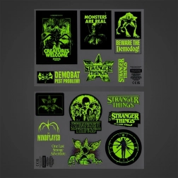 Objevte atmosféru Hawkinsu s těmito svítícími samolepkami Stranger Things. Sada obsahuje 14 ks samolepek, které se po nasvícení rozzáří ve tmě a dodají pokojům, notebookům či doplňkům stylový neonový efekt.